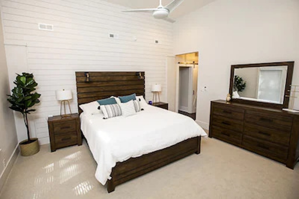 - Primary bedroom has a king bed and pull out twin sleeper sofa. It includes a large bathroom with an exquisite walk-in-shower.