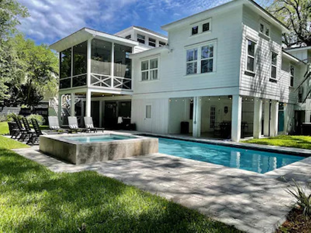 Under the Palms is a beautifully renovated island home on a quiet street with a large lot. There is a new luxurious pool and hot tub for your enjoyment (pool/spa heating is extra fee, see below). It is a short walk or golf cart ride( Limo cart available for a $300 fee) to a pristine beach. The house is two streets over from the Isle of Palms Recreation Department, which includes a large playground, as well as basketball and tennis courts. Downtown Isle of Palms and a grocery store are a quick three minute drive. The IOP Marina is just 10 blocks away!